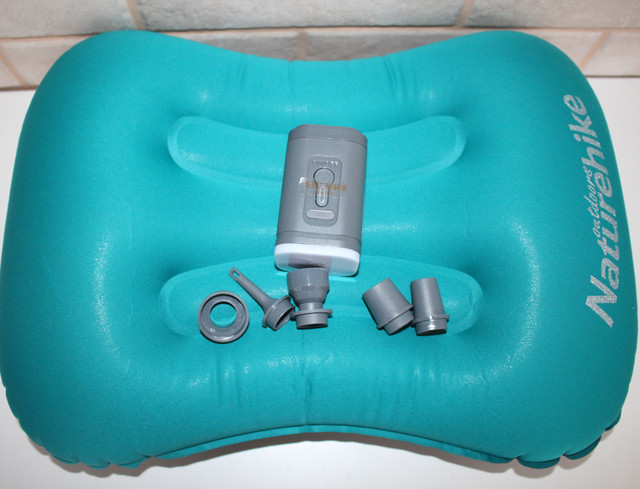 Портативний акумуляторний насос для туристичних килимків подушок м'ячів Pacoone з ліхтариком та 5 насадок Gray