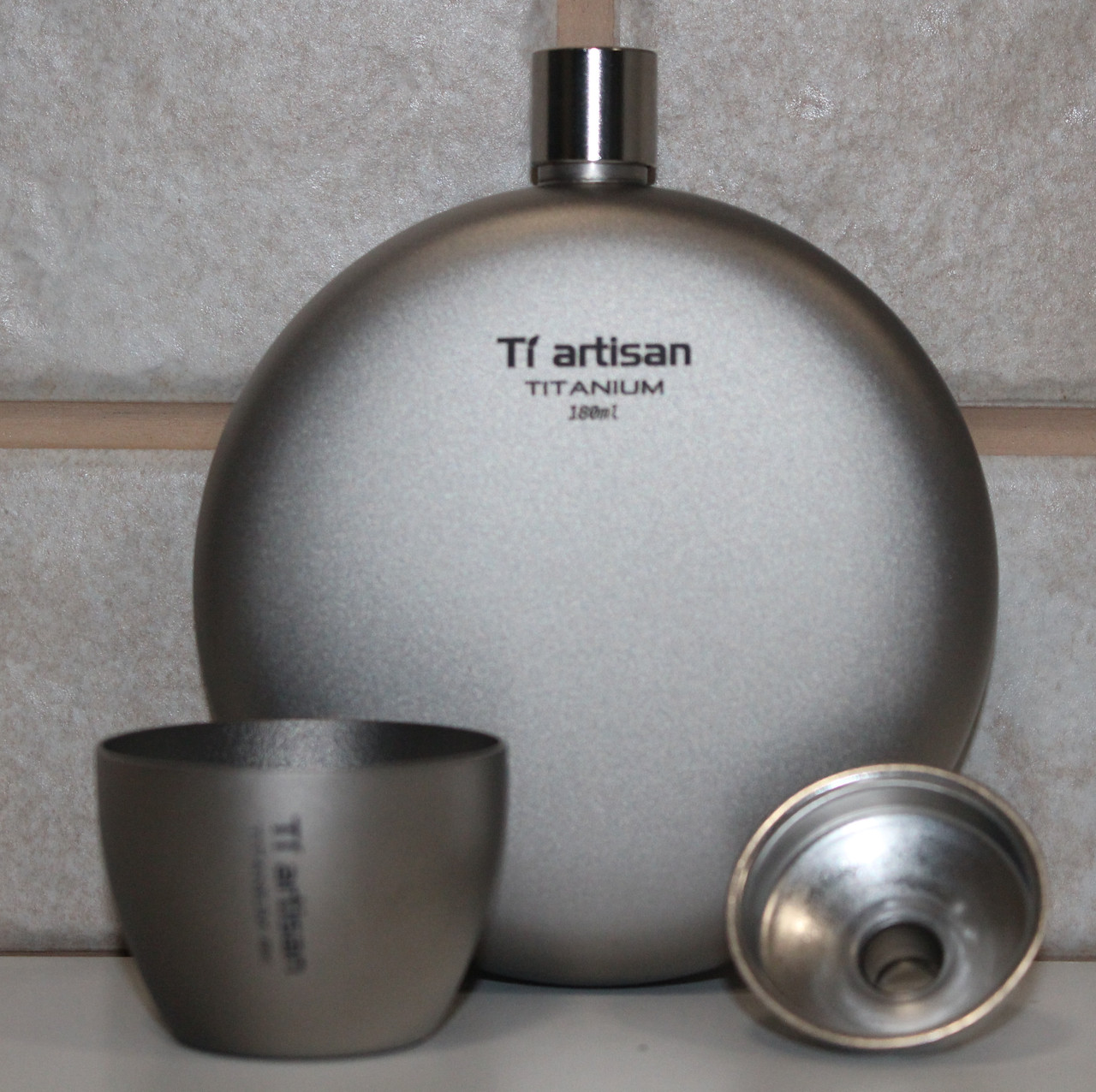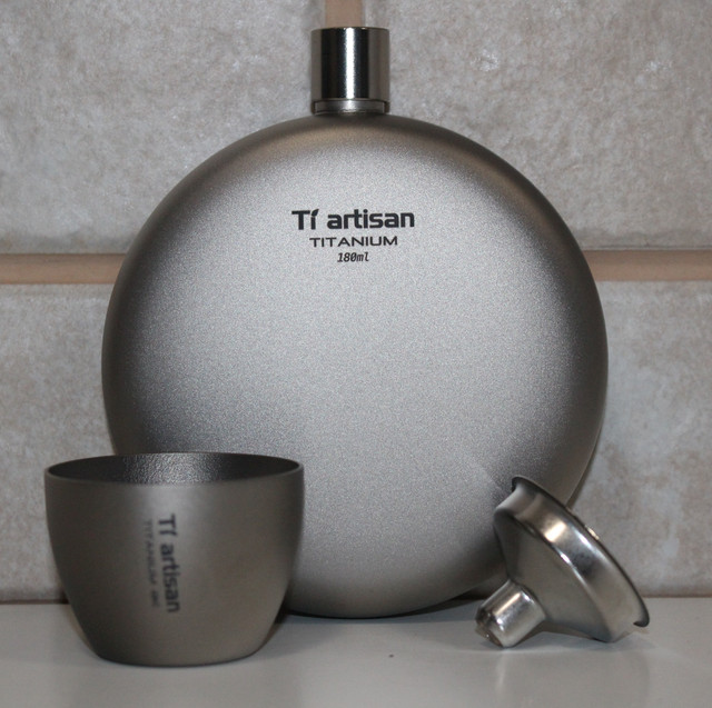 Фляга титанова для алкогольних міцних напоїв Tiartisan 180 мл з титановою чаркою 40 мл лійка та чохол