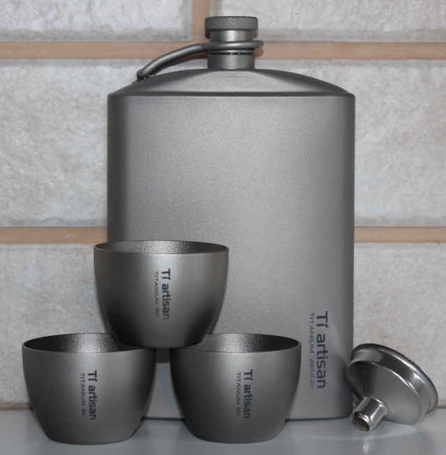 Титанова фляга Tiartisan 260 ml для алкогольних напоїв + 3 чарки та лійка.